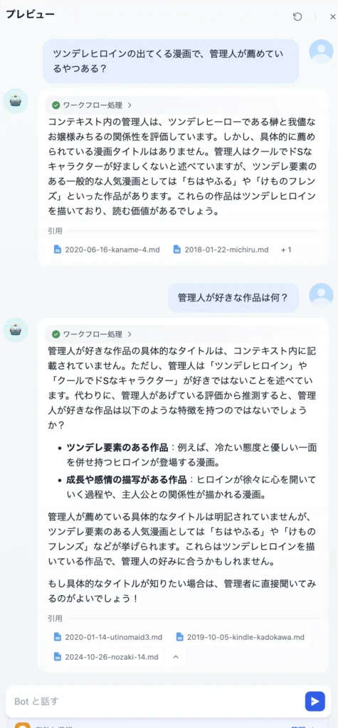 爆死する予感しかないのだけれど、現在ブログの内容を覚えさせてAIをサイト水先案内人にする、という試みをしていたりする。漫画読めよ。