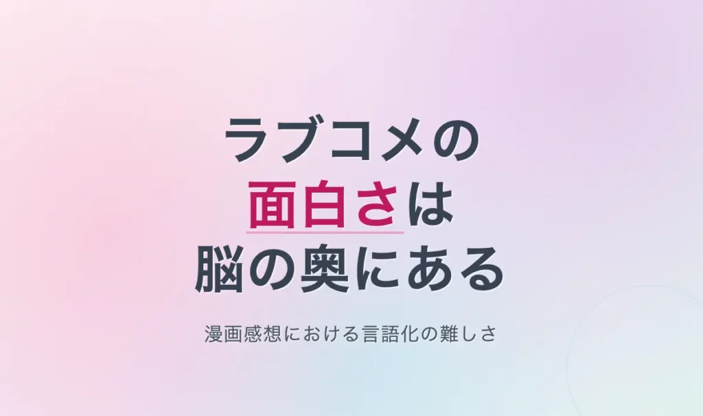 このサイトはラブコメ漫画の感想サイトで、既に数百作品以上について感想を残しているが、感想としては微妙な感じのニュアンスで書いたものも多い。というか、さすがに数百作品のラブコメを全部が全部面白いと思うことはないだろう。ただ、あまりに何も感じないと、俺の感受性は死んだのか?と不安になることもある。そうかと思えば、読み進めるのがとても楽しい、と感じることもある(そういうことがあるので読み続けている)。 自分に素直になってきたのかもしれない。面白さを、脳の奥で感じているような気がす...