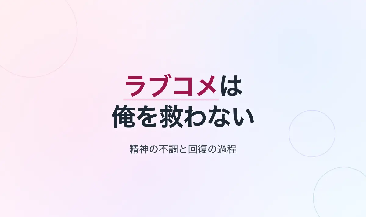 つまり、俺は人と話をしたり、自覚して休んだり、自分の心を分析したりして、また時を経過させることで、体に傷跡を残しつつも(あー完治してほしい)、なんとか今日も生きながらえているのだが、回復の過程にラブコメ漫画はないわけだ。