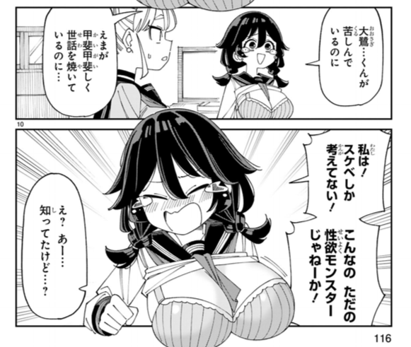 完全なる性欲モンスターなのだが、どこか1/3の純情を残しており、ふと我に返ってスケベで人の優しさを無下にしていないかと反省することもあり。